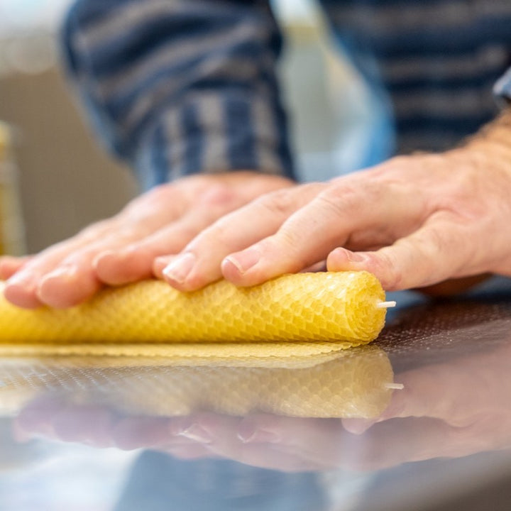 - Learn to hand roll beeswax taper candles. Bring home additional supplies and teach your friends!